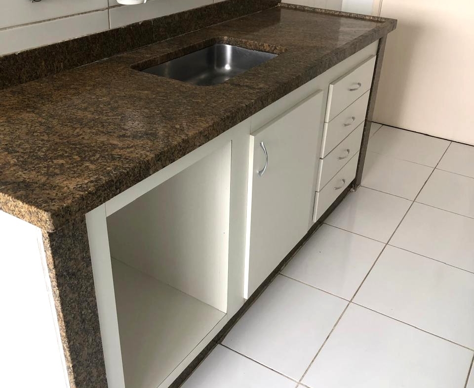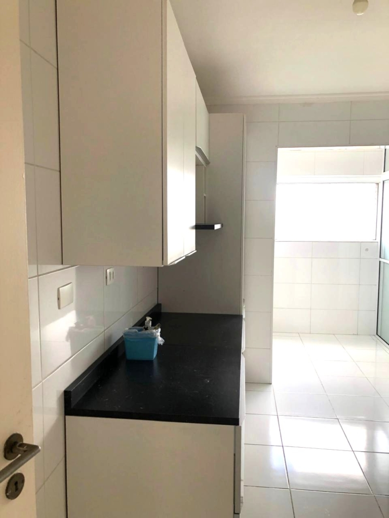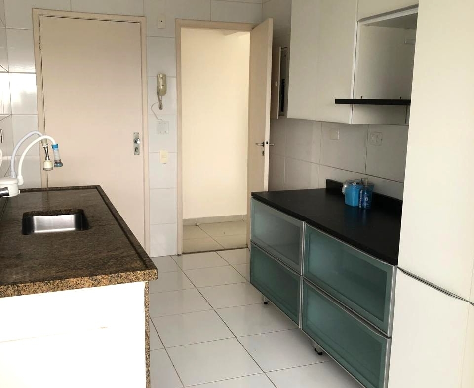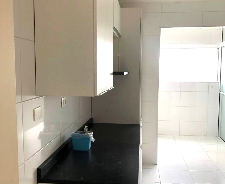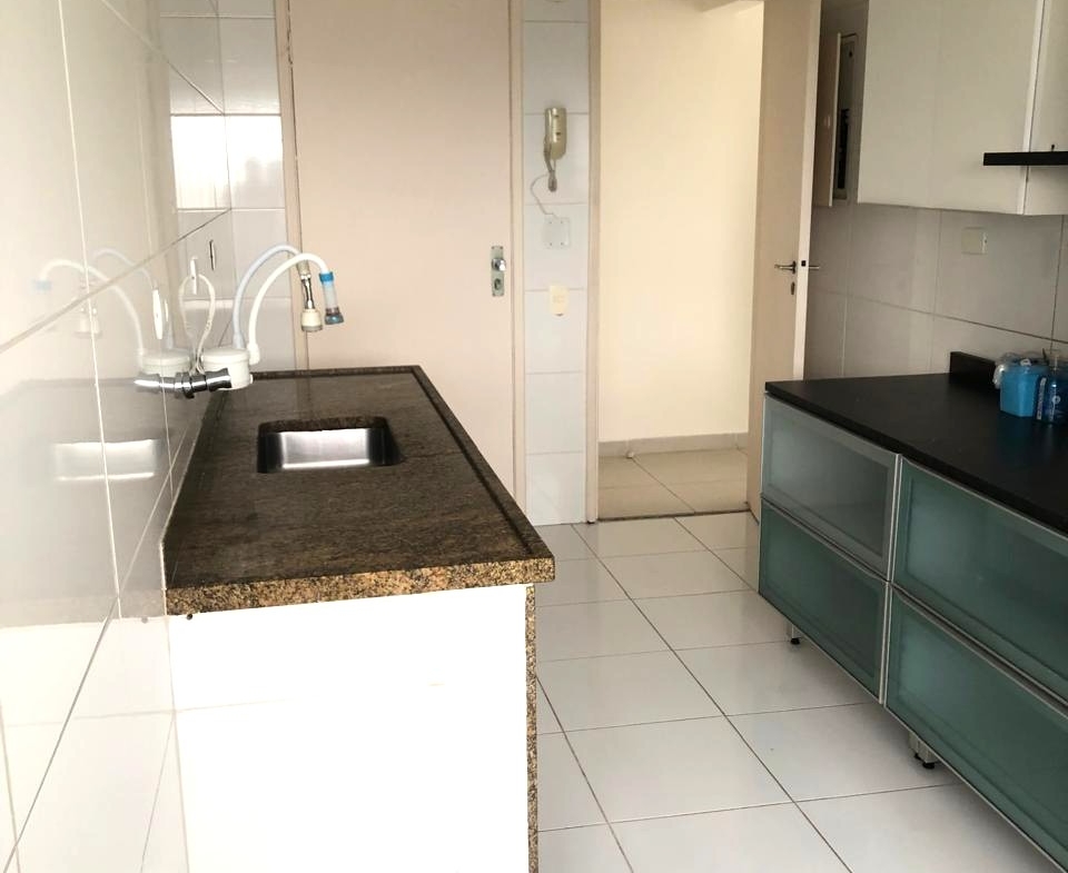 Apartamento, piso cerâmico no apto todo. Sala para 3 ambientes, o terceiro quarto ampliou a sala (3 quartos transformado em 2); cozinha com armários, área de serviço e dependência transformada em lavanderia, banheiro de serviço empregada.